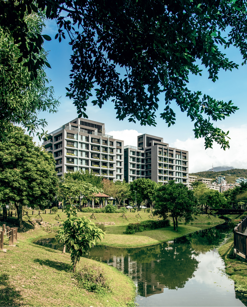 天天充滿陽光、空氣、花和水,擁有5,600坪三面生態公園的綠意,不是靠近綠意而是生在其中,為現代都市中難得的寶地。