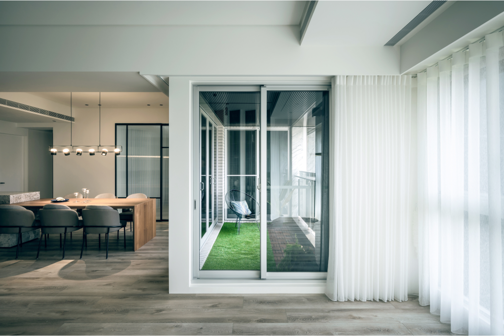 採全開式落地窗,時刻讓戶外綠意、光線、微風融入日常周圍無遮蔽,彷彿綠意因我而生。